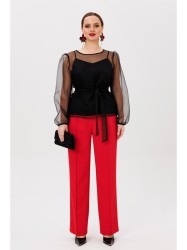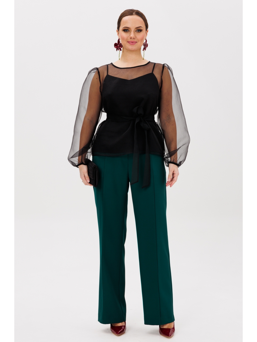 Нарядный женский комплект, состоящий из блузы, топа и брюк.