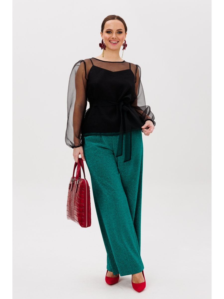 Нарядный женский комплект, состоящий из блузы, топа и брюк.