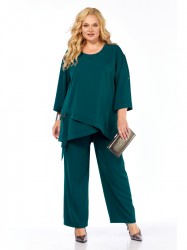 Нарядный женский комплект-двойка, состоящий из туники и брюк, выполнен из струящейся ткани. Ассиметричный крой в сочетании со стильной фурнитурой создаёт яркий притягательный образ для праздничных событий.