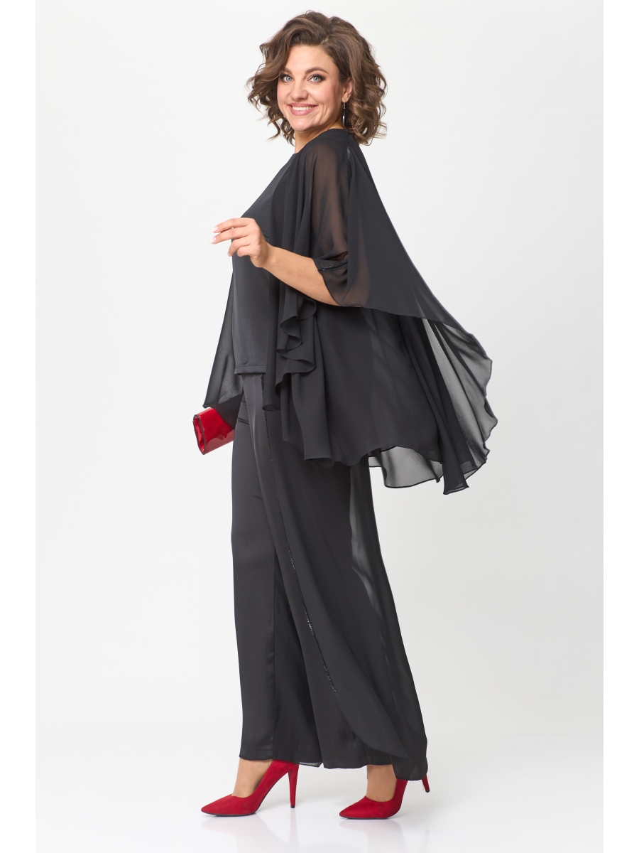 Комплект нарядный женский двухпредметный, состоящий из брюк свободного кроя и блузы.