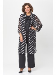Наша фирма представляет для наших самых модных и красивых клиенток комплект, который состоит из брюк свободного кроя, удлиненной рубашки и топа.