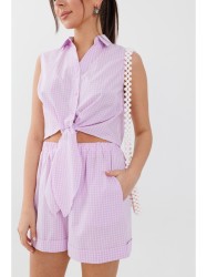 Этот стильный комплект из шорт и топа на завязке спереди идеально подходит для прогулок и отдыха в жаркие дни.