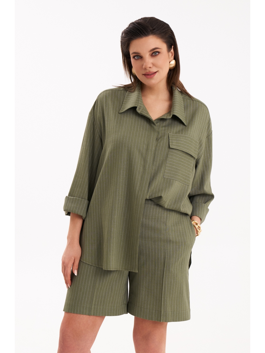 Комплект, состоящий из объёмной рубашки и шорт.