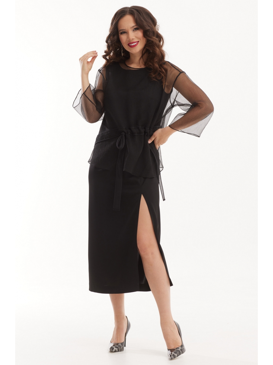 Блуза свободного прямого кроя с регулируемой драпировкой по талии. Рукав 7/8. Выполнена из воздушной невесомой органзы.