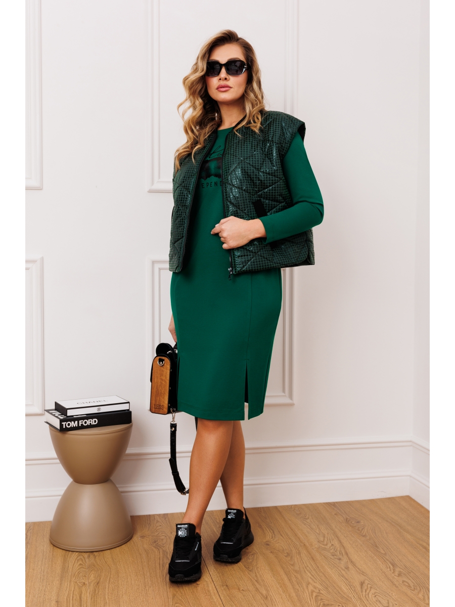 Стильный женский комплект двойка, состоит из жилета и платья.