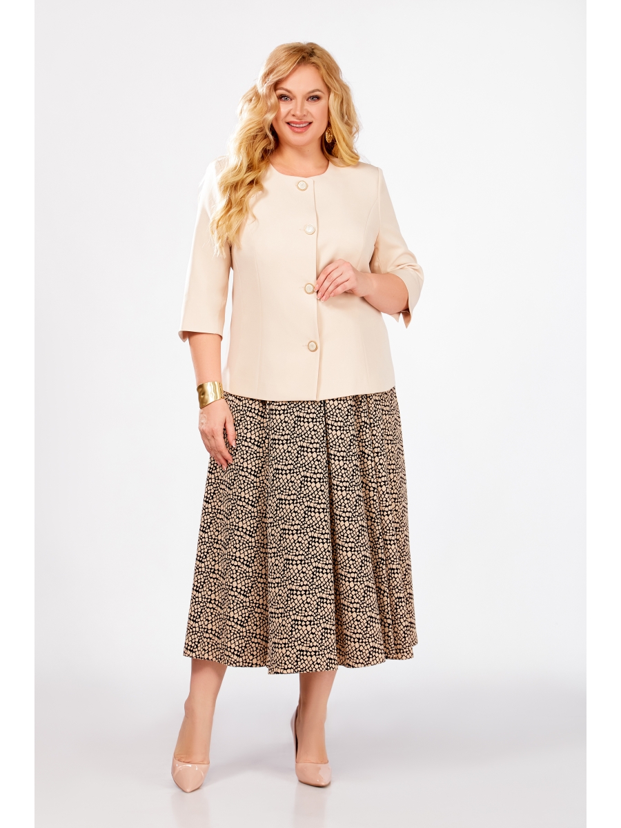 • Цвет: жакет: светло-бежевый, платье: принт бежевые камушки на чёрном