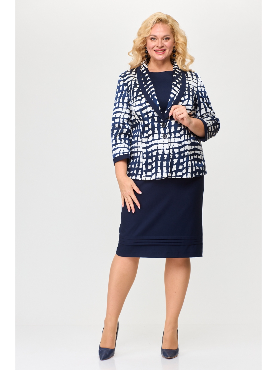 Платье полуприлегающего силуэта. По переду отрезной бочок, выходящий из проймы, по низу переда застрочены 3 горизонтальные декоративные складки. Спинка с центральным швом, застежкой молния и талиевыми выточками. Рукава втачные, одношовные. Платье без подкладки.