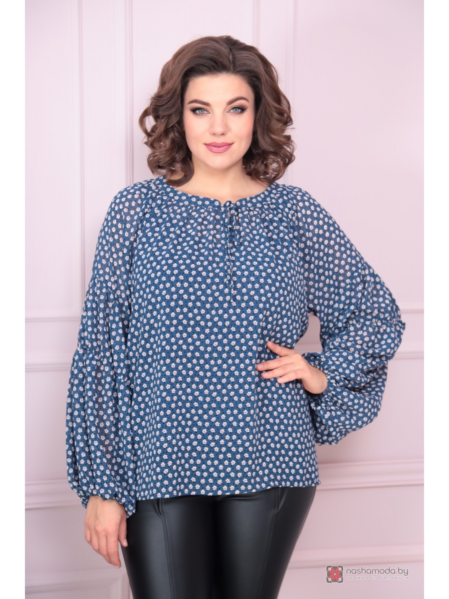 Блуза свободного кроя. Горловина-стойка. По переду обработан разрез и завязывается на завязку.