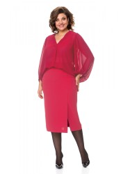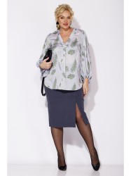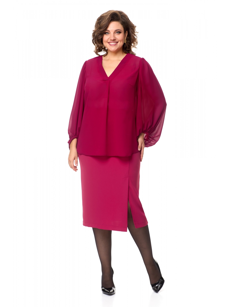 Оформить заказ →Комплект женский 2-предметный (блузка и юбка). Блуза из шифоновой ткани, полуприлегающего силуэта. По полочке идет нагрудная вытачка из бокового шва. Вырез V-образной формы с планками и складкой по центру. По спинке средний шов, рукав объемный, по окату сборка. Низ рукава фигурный, на резинке. Юбка зауженная к низу, по полочке по линии колена - шлица. По спинке: средний шов, молния, пояс отрезной с резинкой. Длина спинки (блузки): (50-52)-71 см, (54-60)-72 см. Длина рукава: (50-52)-58 см,(54-60)-59 см. Длина юбки (50-60)-75см