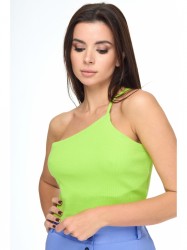 Топ контрастного цвета, с ассиметричной верхней линией.