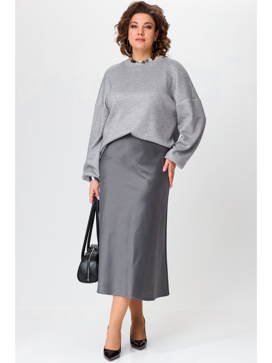 Модный женский комплект из атласной юбки и свободного джемпера с люрексом — это стильное и комфортное решение для создания как повседневных, так и вечерних образов.