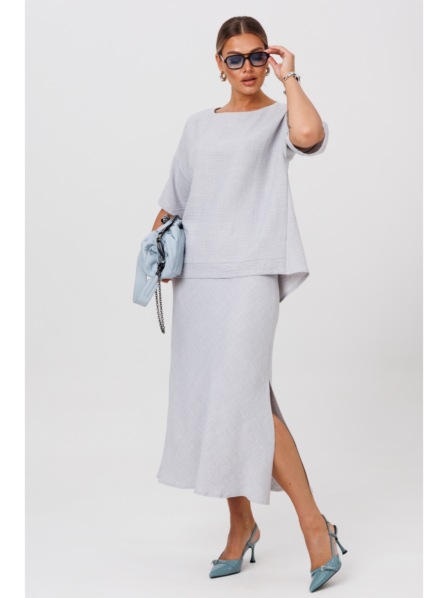 Костюм женский от Anastasia состоит из 2 предметов: блузки и длинной юбки миди.