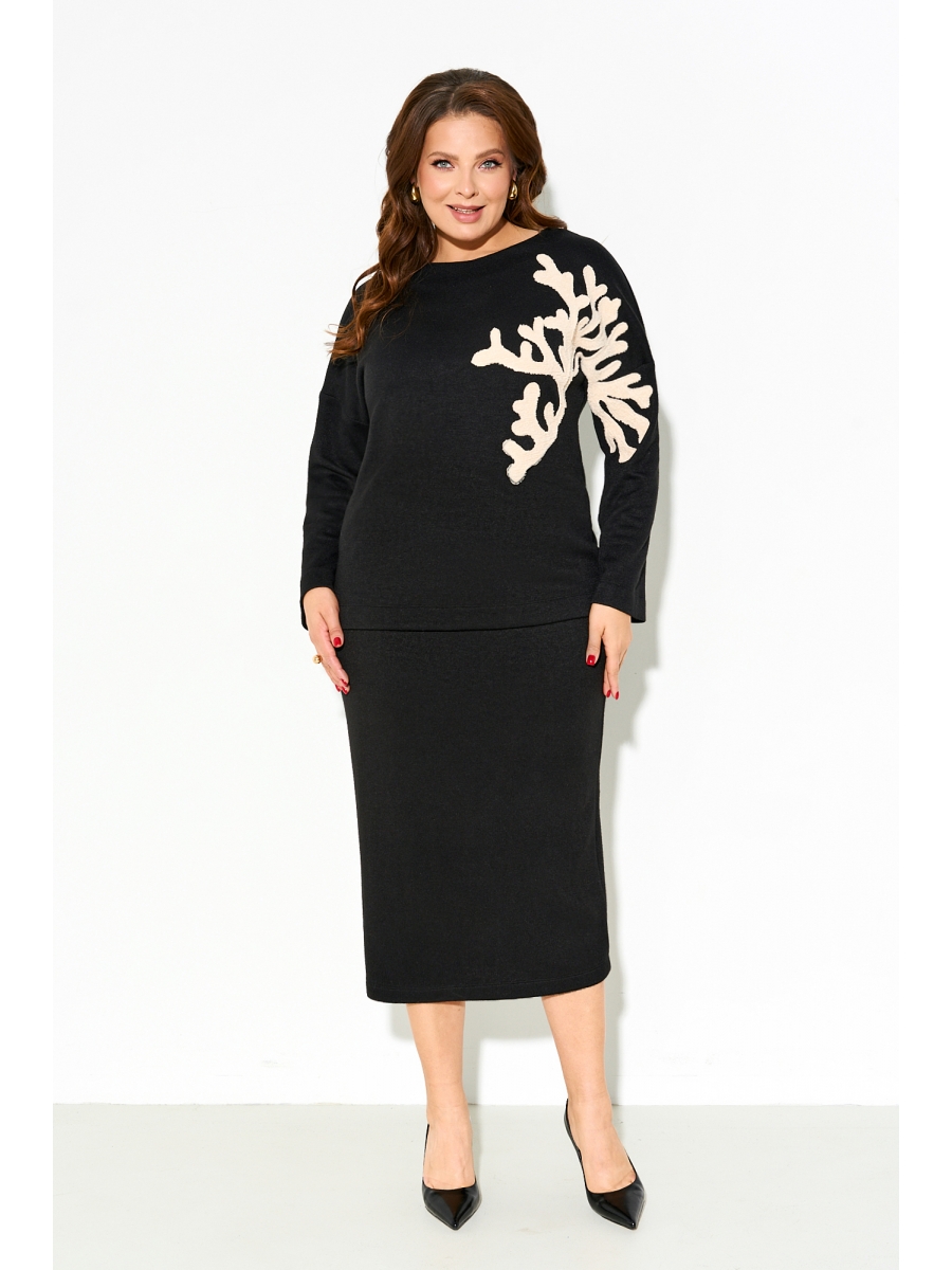 Джемпер полуприлегающего силуэта из мягкого трикотажного полотна с добавлением ангоры со втачными немного спущенными рукавами и округлым вырезом горловины. По переду дизайнерская вышивка.