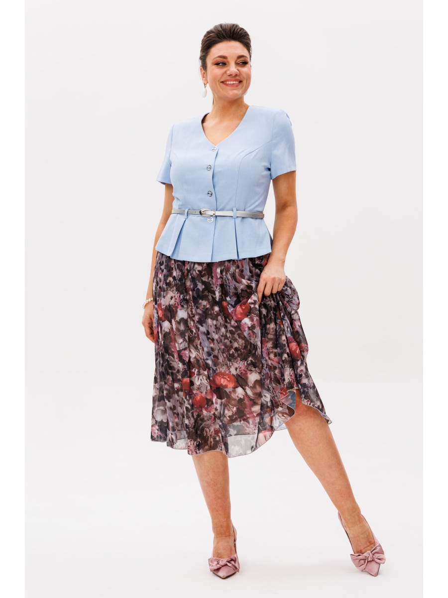 Этот костюм, состоящий из жакета с баской и юбки, станет отличным дополнением вашего гардероба. Жакет выполнен без подкладки, что придает ему легкость и комфорт в носке. Он застегивается на пуговицы спереди и комплектуется съемным ремнем, позволяющим подчеркнуть талию и создать идеальный силуэт.