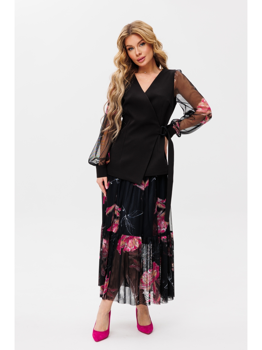Юбочный костюм артикул: 2055-1 черный/фуксия от AmberaStyle - вид 1