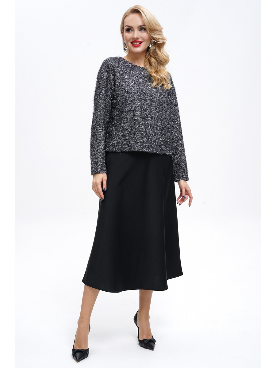 Юбка полуприлегающего силуэта верху книзу типа «рыбки», раскроена по косой, без пояса на обтачке, с застёжкой на потайную молнию в левом боковом шве.