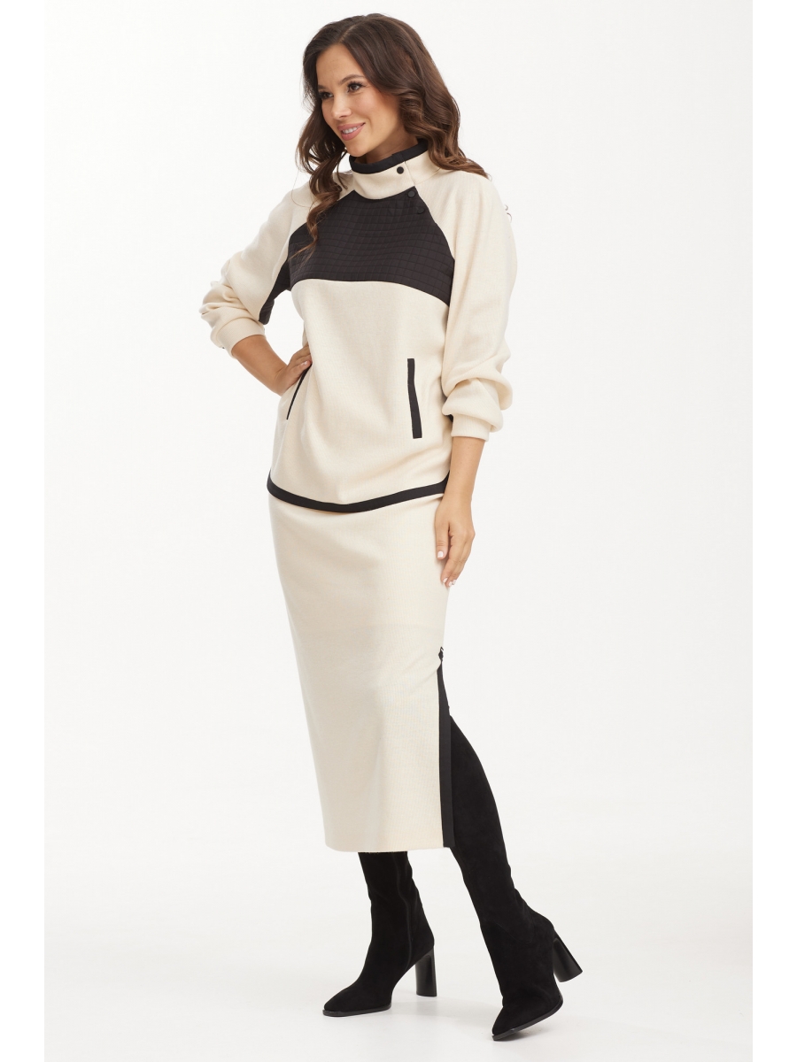 Юбочный костюм 2499 молоко+черный, Магия Моды – купить с доставкой в Новосибирске на novosibirsk.belpodium.ru