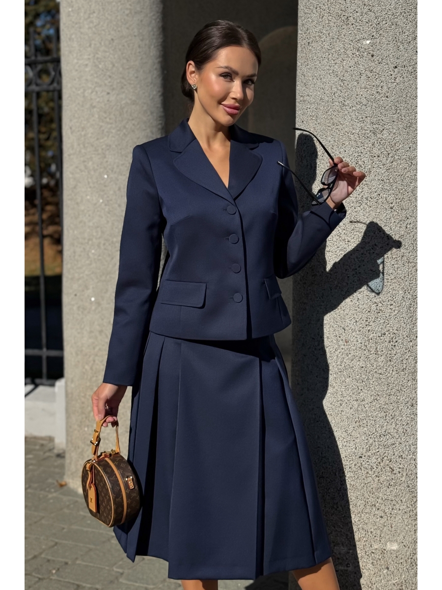 Классический костюм женский с юбкой от URS / ЮРС — безупречный выбор для тех, кто ценит элегантность, строгость и комфорт. Этот деловой костюм состоит из жакета и юбки миди, выполнен из качественной ткани с добавлением шерсти.