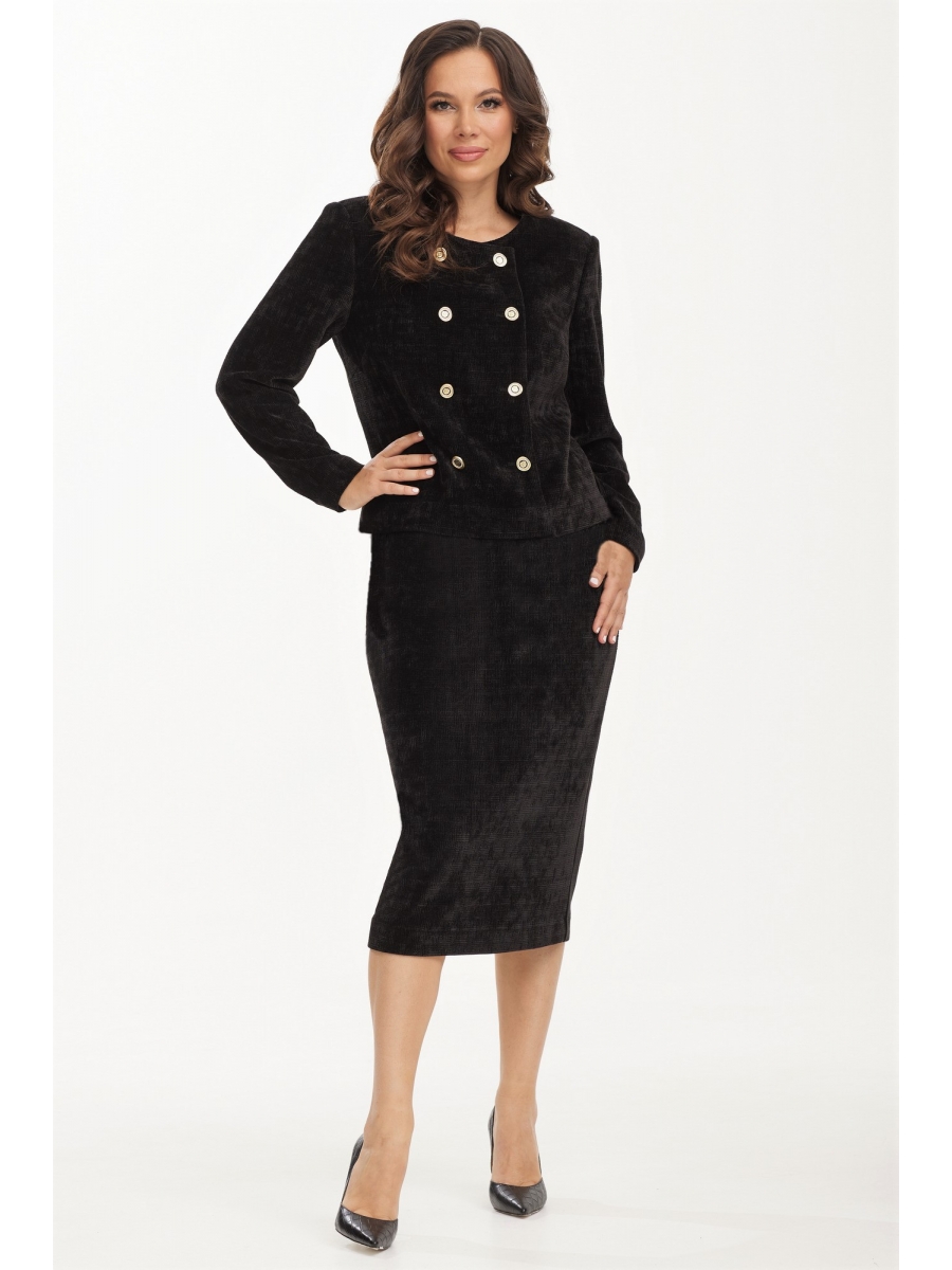 Элегантный костюм из жакета и юбки, выполненных из фактурного трикотажного полотна с эффектом бархата.