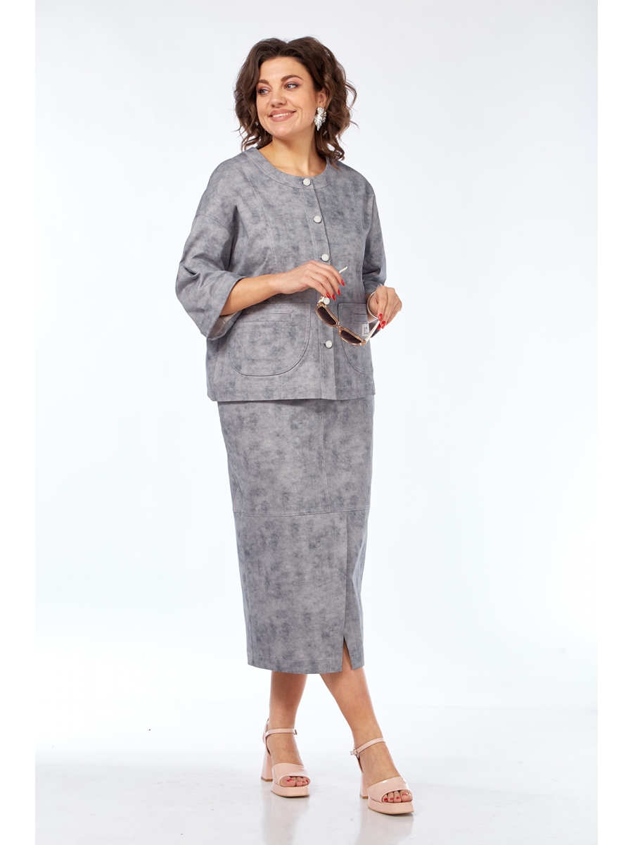 Костюм женский 2-х-предметный, состоит из жакета и юбки, выполнен из хлопковой костюмной ткани.