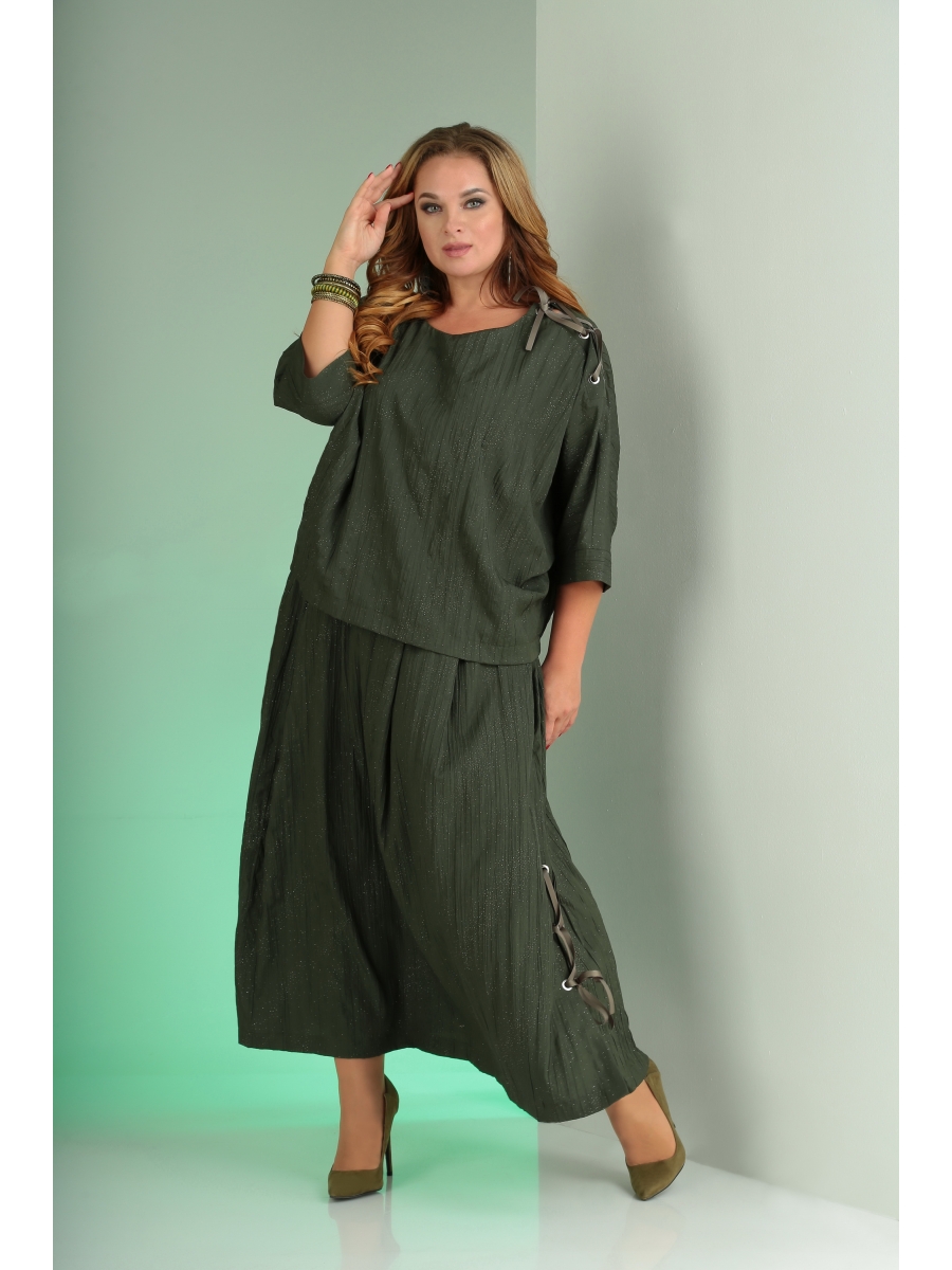 Юбка: свободного силуэта в стиле "бохо" из плательной ткани. По переднему и заднему полотнищу юбки по 4 складки. В боковых швах функциональные карманы. По низу изделия в боковых швах притачная планка с декоративными люверсами на шнур-завязку. по талии изделия пояс с эластичной тесьмой ( резинкой ).