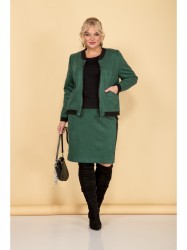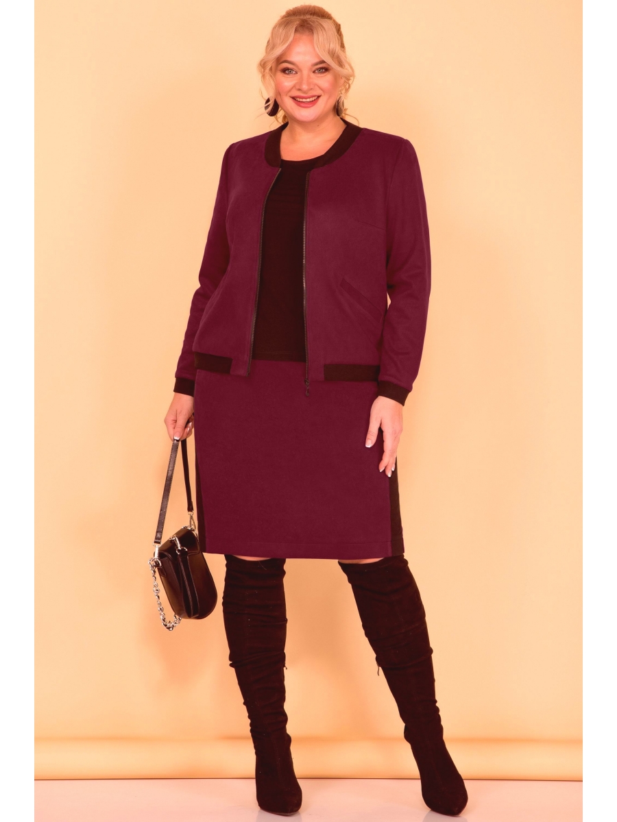 Бомбер и юбка выполнены из бархатистой эко-замши на трикотажной основе. Бомбер на застёжке-молнии. На полочках обработаны нагрудные вытачки и прорезные карманы с листочкой. Рукав втачной, длинный. Низ рукава, горловина и низ бомбера оформлены трикотажным полотном.