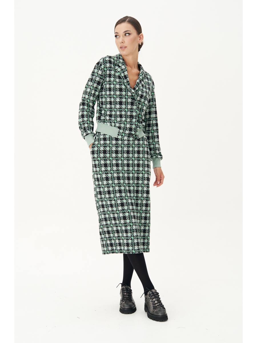 Жаккардовое смесовое трикотажное полотно в стилизованную гусиную лапку в модном цветовом решении.