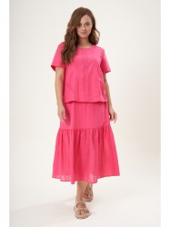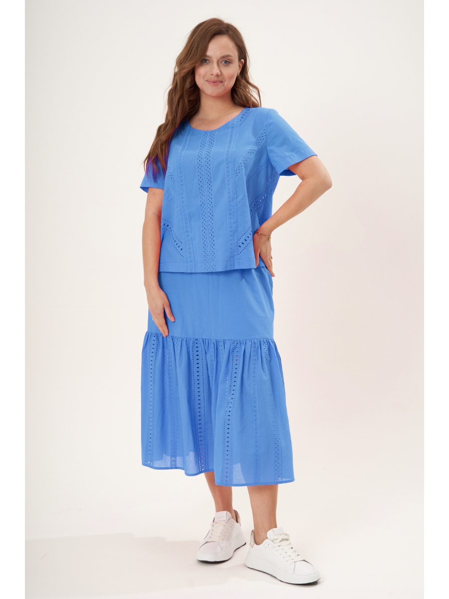 Летний лёгкий костюм состоит из блузы и юбки, выполненный из хлопкового шитья в сочетании с однотонной тканью.