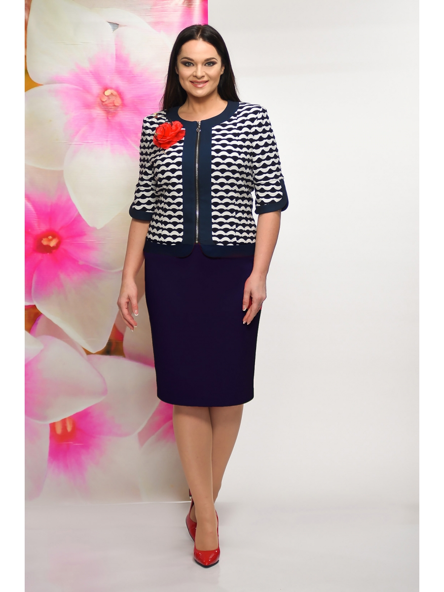 Оформить заказ →Комфортный комплект из жакета и юбки. Жакет полу-приталенного силуэта, передние полки на подкладке, по переду рельефы , спинка со средним швом и талиевыми выточками. Застёжка - молния по переду изделия. Рукав втачной . Юбка на подкладке, прямого силуэта , без пояса ,на обтачке , с талиевыми выточками по переду и по спинке, по спинке средний шов, переходящий в шлицу, застёжка - потайная молния сзади. Примечание: декоративный цветок не входит в комплект.