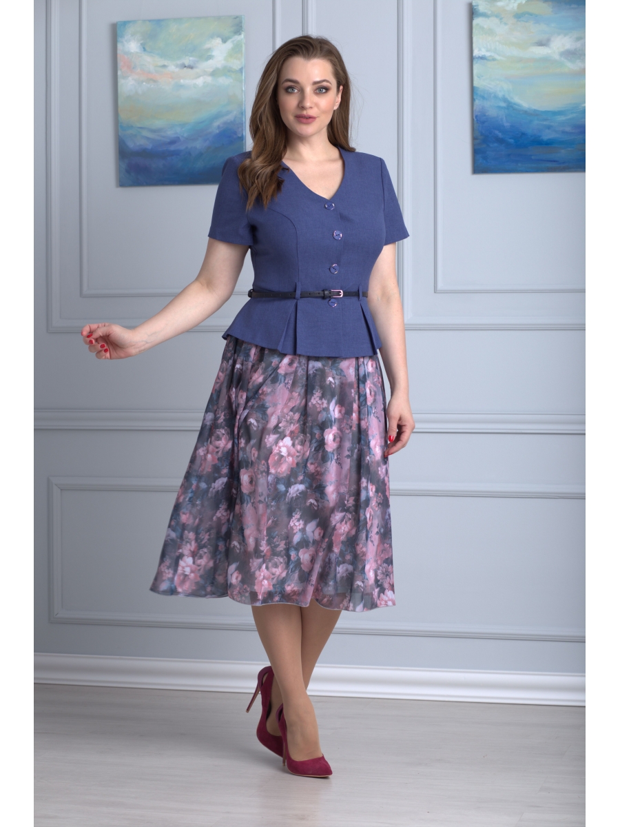 Комплект, состоящий из жакета и юбки. Выполнен из ткани с компаньоном в единой цветовой палитре.
