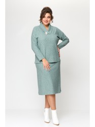 Уютный джемпер свободного силуэта. Воротник с глубоким запахом и складкой переходит в планку на груди. Рукав зауженный длинный. По бокам невысокие разрезы. На воротнике декоративная брошь.