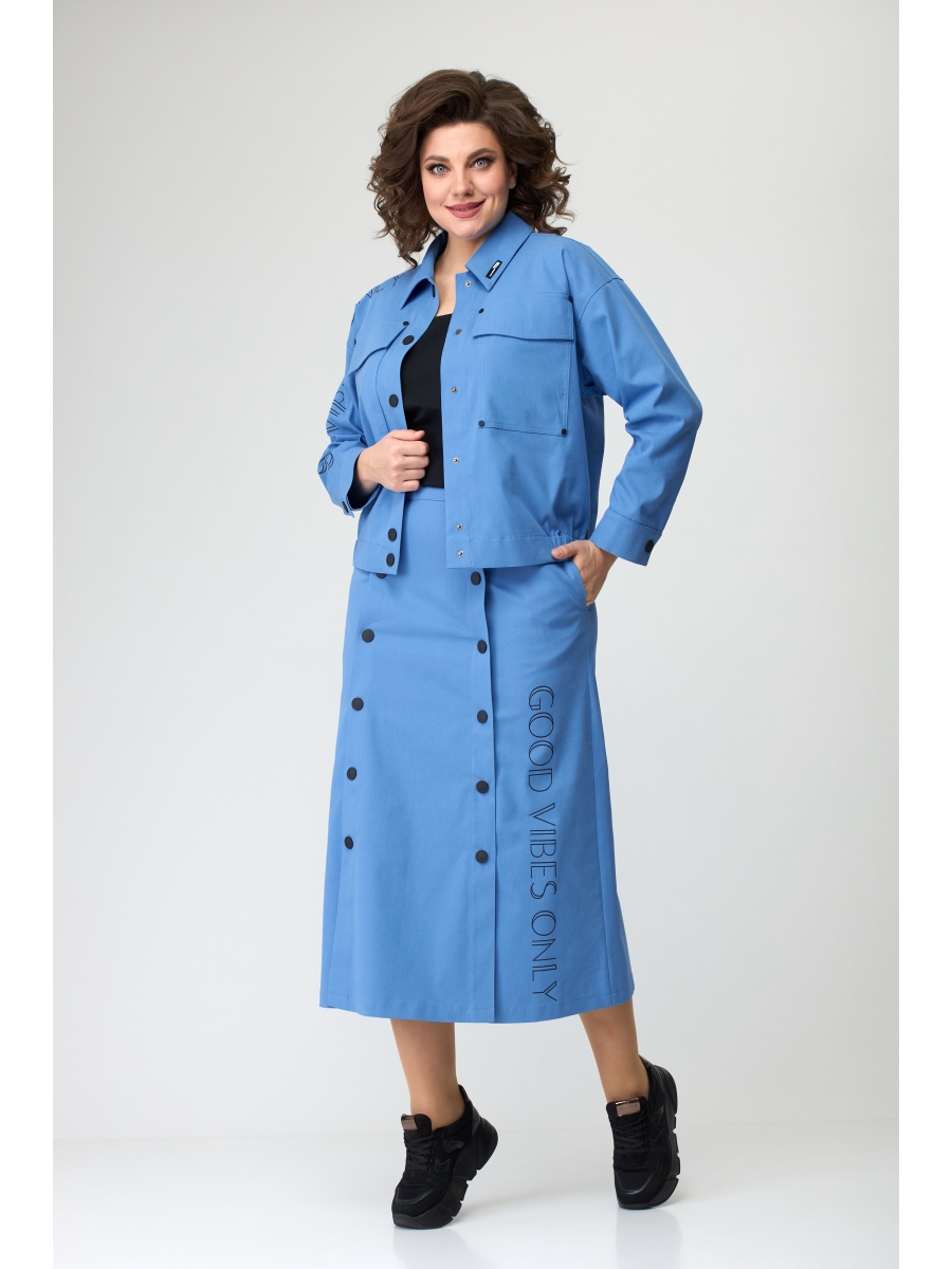 Стильный женский костюм, выполнен из джинсовой ткани.