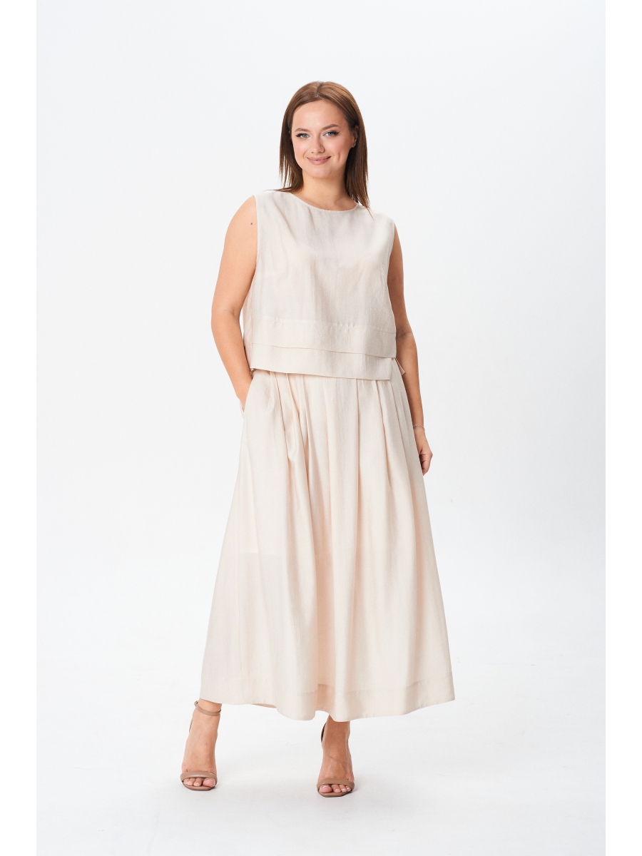 Комплект женский летний состоит из топа и юбки макси, выполнен из однотонной плательно-блузочной ткани.