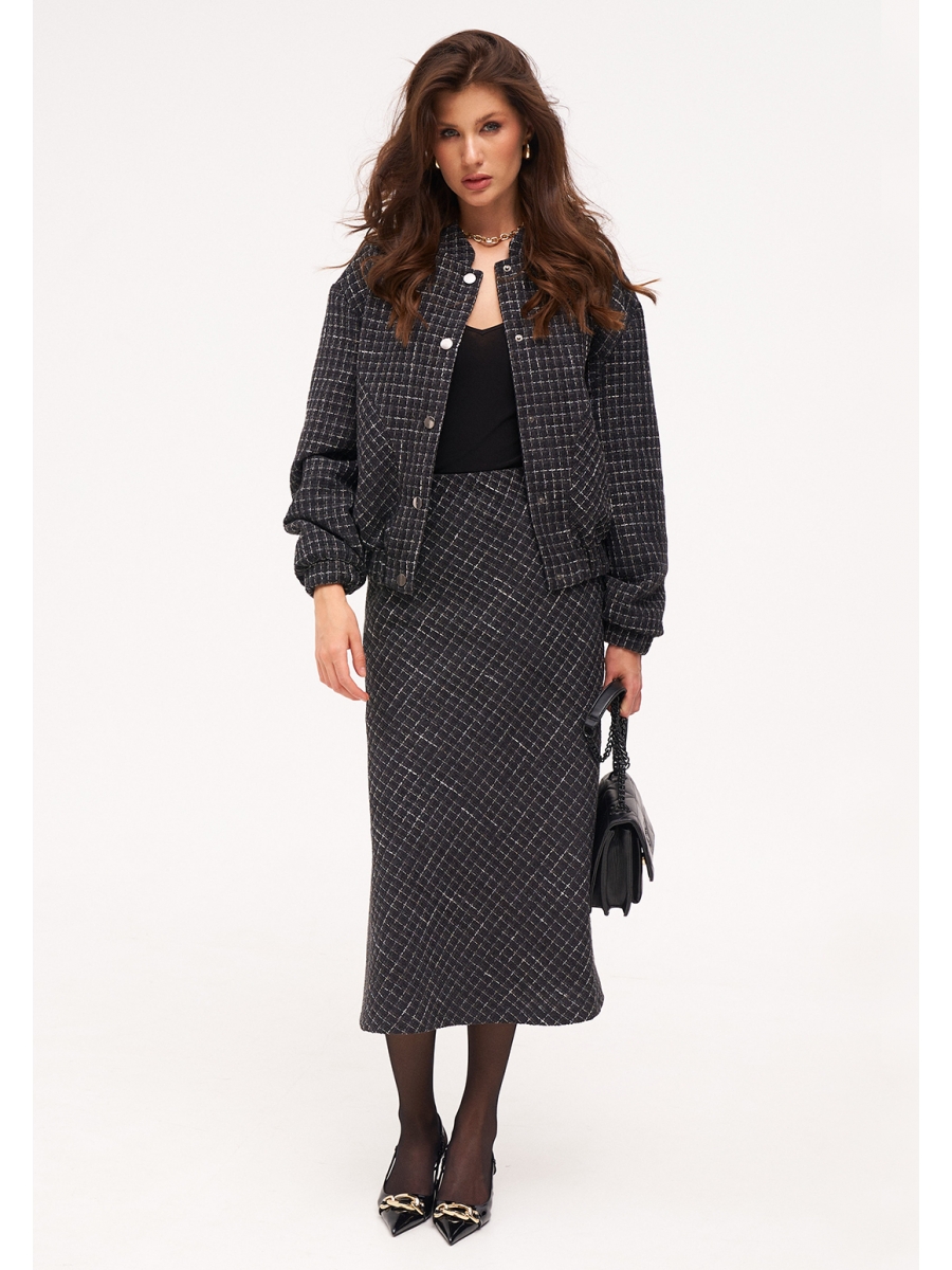 Твидовый костюм из двух предметов: бомбер и юбка.