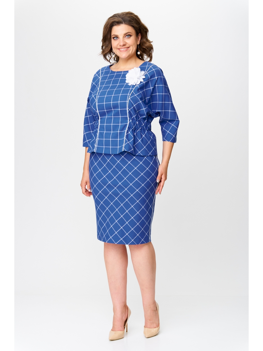 Стильный женский костюм выполнен из ткани с принтом в клетку.