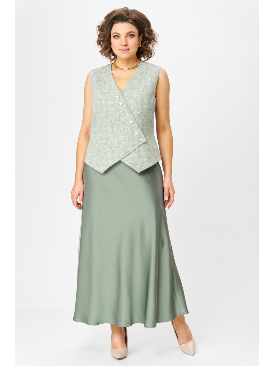 Стильный женский комплект: жилет по переду из жаккарда, спинка и юбка из однотонного атласа.