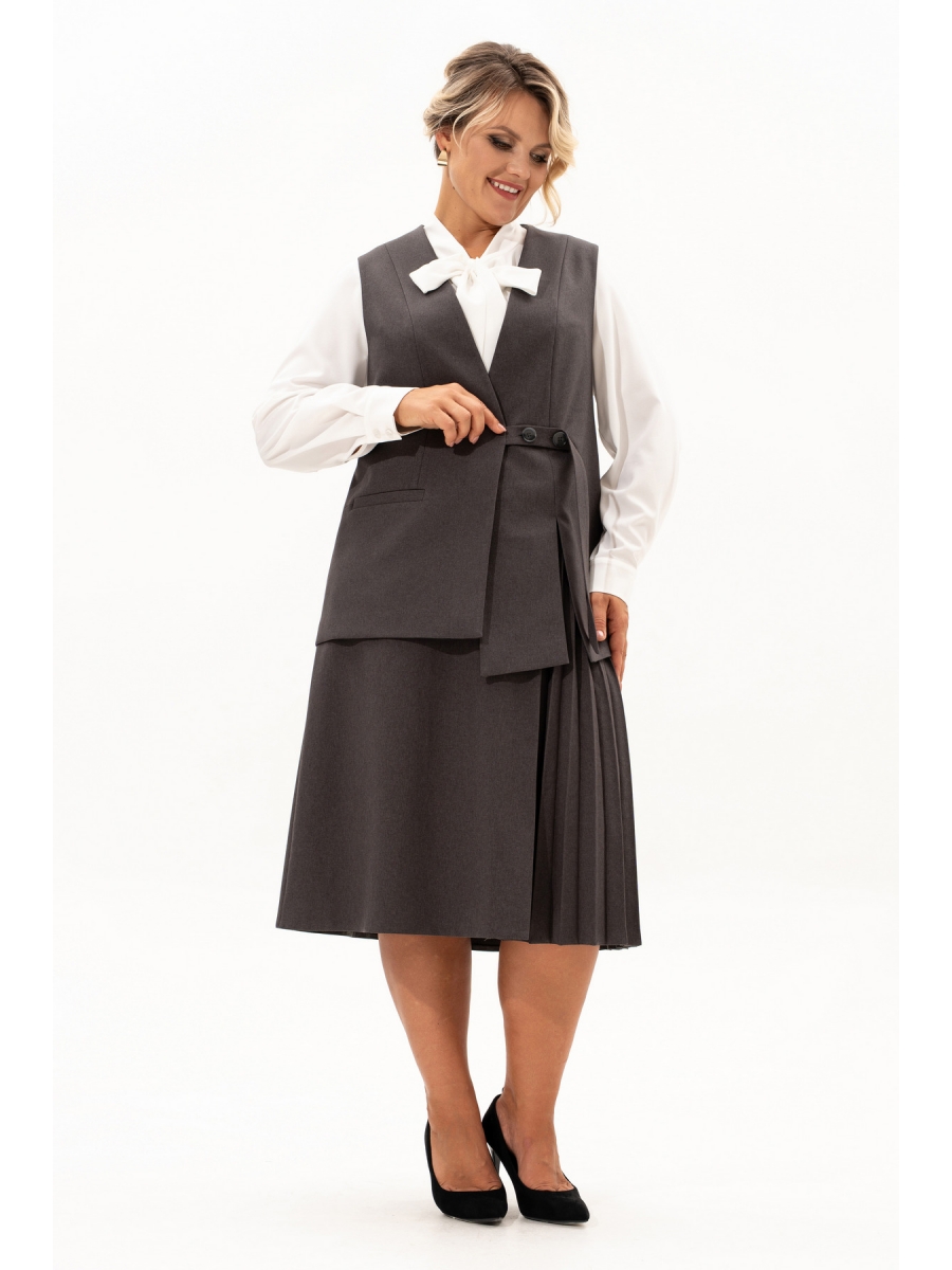 Костюм с юбкой миди – это изысканный выбор для особых моментов вашей жизни. Этот элегантный наряд создан для тех, кто ценит стиль и комфорт. Костюм выполнен из высококачественного "дышащего" материала, поливискозы, что обеспечивает её долговечность. Фактура материала придает костюму особенный шарм. Классический жилет с V-образным вырезом горловины превосходно садится по фигуре, на правой полочке обработан прорезной карман с листочкой, на левой - разрез, застежка обработана на отлетном хлястике, на петлю и пуговицу. Этот элемент делает его более интересным. Жилет на подкладке. Плиссированная деталь юбки добавляет легкости и изящества, делая ваш образ особенно привлекательным. На юбке в боковом шве обработан карман. Удобная посадка пояса юбки, частично на резинке с потайной молнией по среднему шву спинки - это комфорт и свобода движений на весь день. Костюм легко сочетается с любыми аксессуарами, позволяя вам экспериментировать с вашим стилем.
