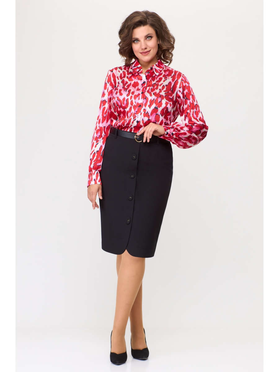 Юбка прямая на притачном поясе. По переду имитация запаха изделия. Застежка на молнию и пуговицу.