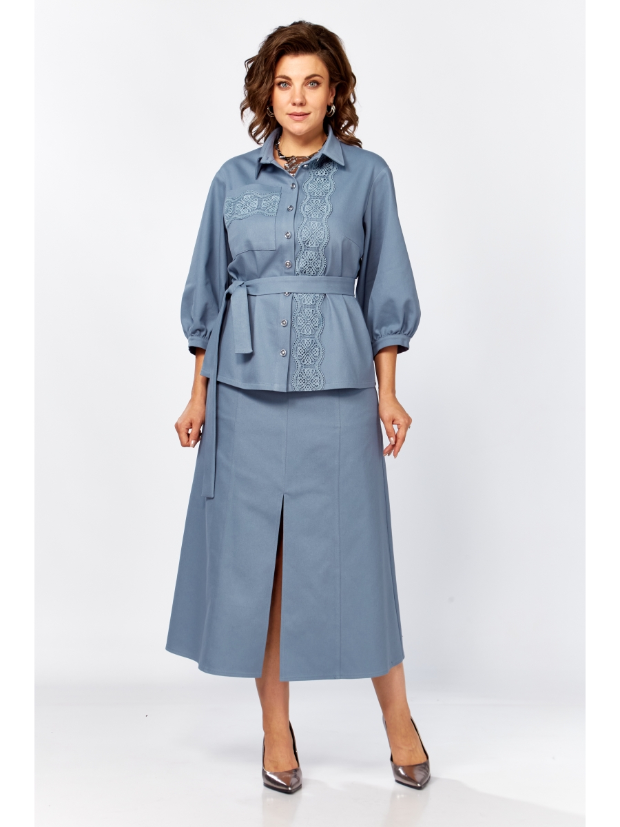 Костюм женский из джинсовой ткани, состоящий из блузы и юбки.