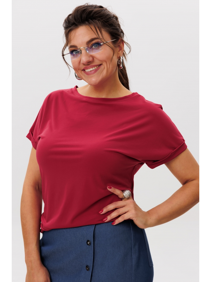 Мягкий трикотажный топ свободного кроя с рукавом реглан станет любимой вещью в гардеробе. Благородный оттенок «спелой вишни» придаёт образу глубину и изысканность, а пластичная ткань мягко облегает фигуру, сохраняя комфорт в течение всего дня.