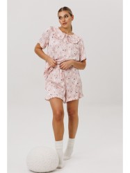 Воротник блузы и отделка шорт рюшами создают атмосферу сказочности и воздушности.