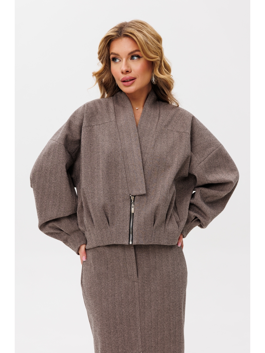 Оформить заказ →Жакет-Бомбер "ОВЕРСАЙЗ" со спущенным плечом, воздушным рукавом, по низу рукава бантовые складки. По переду завтежка на молнию, воротник "шаль". Перед жакета на кокетке, по низу заложены складки. Спинка на кокетке, по низу резинка.