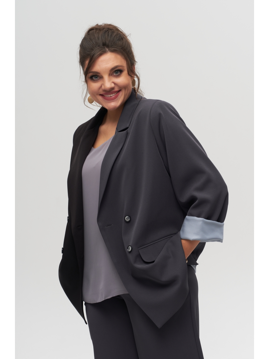 Жакет двубортный, созданный с трепетом и любовью. Прямой, свободный силуэт с втачными рукавами, отложным воротником и лацканами, с функциональными прорезными карманами с клапаном.