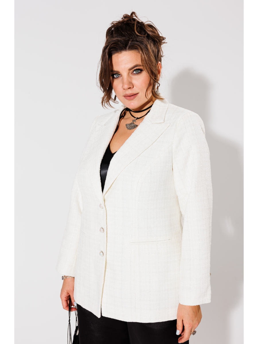 Белый жакет в стиле Шанель от Анелли – это воплощение элегантности и утонченности. Приталенный, чуть удлиненный силуэт этого жакета придаст вам уверенности и деловитости, сохраняя при этом нежность и женственность. Этот жакет идеально подходит для каждого дня и особых случаев. Но в чем его особая изюминка? Это ткань в стиле Шанель и красивые, переливающие пуговицы, которые добавляют ему шарма и уникальности. Носите его с классическими брюками для деловой встречи, или комбинируйте с джинсами для более непринужденного стиля. Этот жакет станет вашим верным компаньоном в мире моды и стиля, а его пуговицы станут вашими секретными оружиями привлекательности.