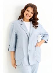 Женский жакет полуприлегающего силуэта без подкладки выполнен из костюмной ткани с добавлением вискозы 63%. По переду изделия функциональные накладные карманы; воротник пиджачного типа; рукава со спущенной линией плеча, внутренней патой и манжетой, что позволяет регулировать высоту рукава и представляет собой стильную деталь с изысканным акцентом; линия низа фигурной формы; застежка на петли и пуговицы. Жакет полностью соответсвует заявленному размеру.