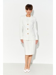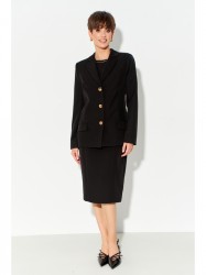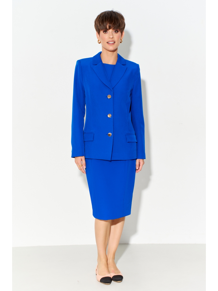 Классичесий женский жакет на подкладке полуприлегающего силуэта выполнен из костюмной ткани с содержанием вискозы. По переду функциональные прорезные карманы; воротник пиджачного типа; застежка на петли и пуговицы; рукава втачные.
