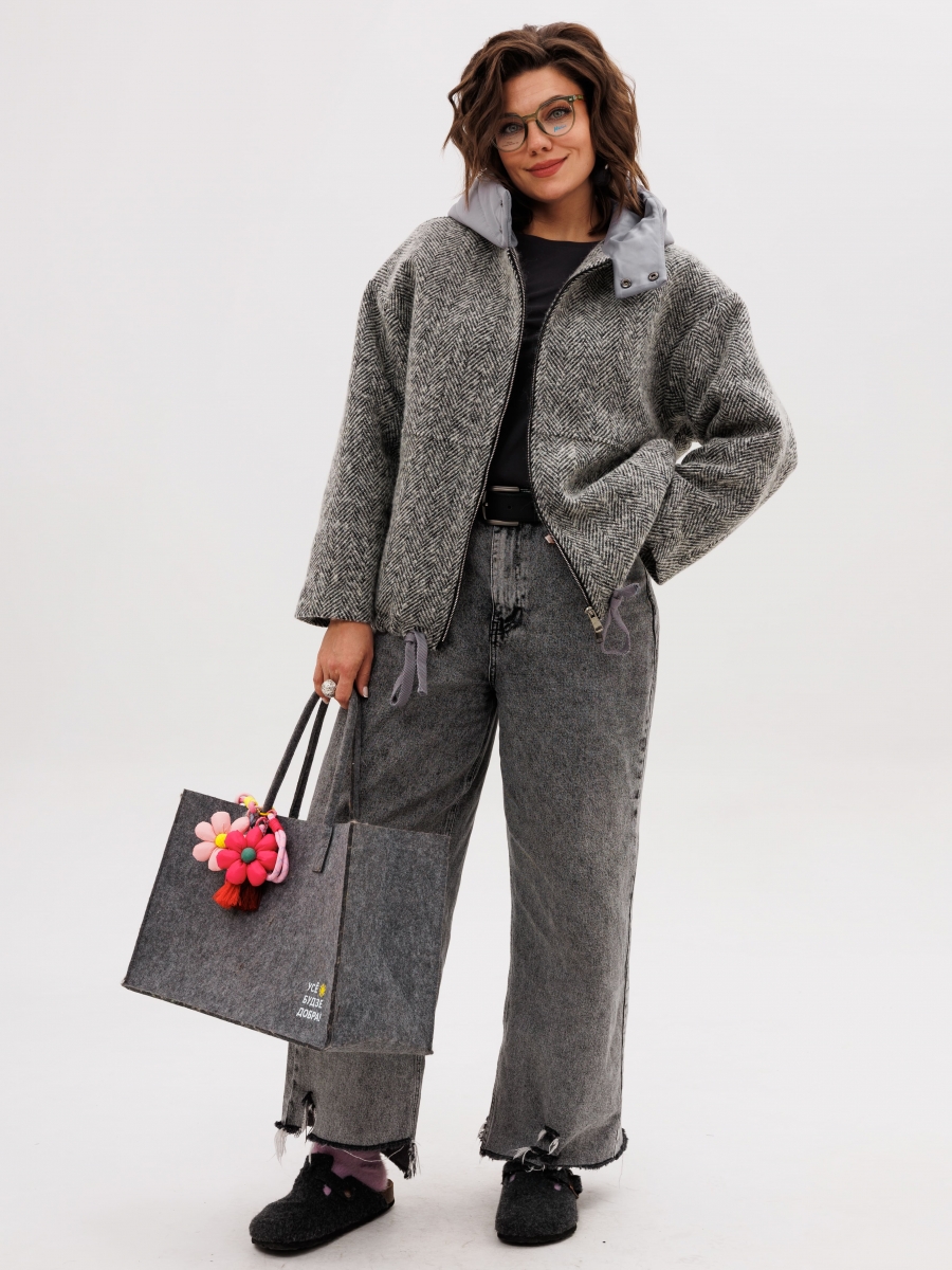 Этот жакет — идеальный спутник для переменчивой погоды межсезонья. Его прямой силуэт со спущенной линией плеч создает современный и утонченный образ, полный непринужденной элегантности. Модель выполнена на уютной подкладке, которая обеспечивает комфорт, но без утеплителя, что делает ее идеальной для теплой осени и прохладной весны.