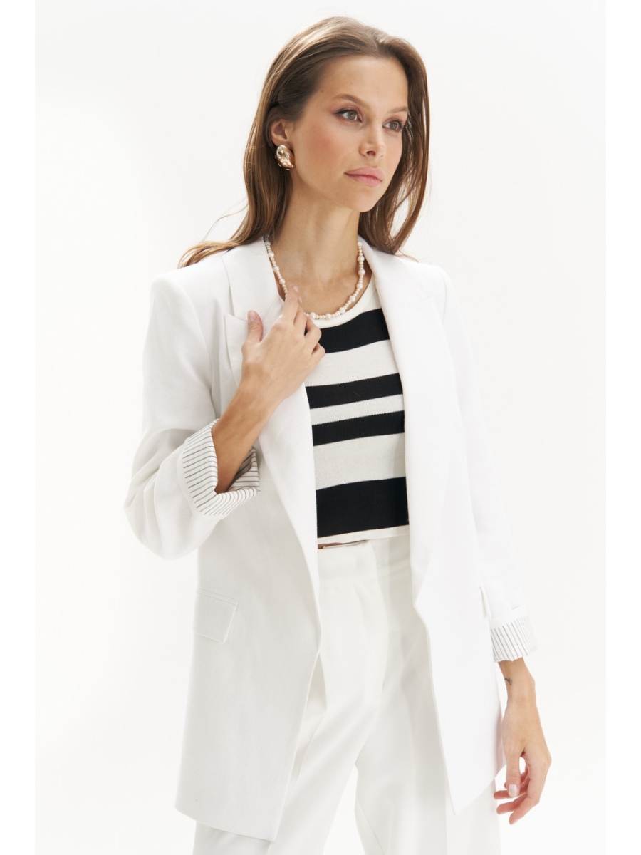 Эффектный летний жакет из льняной ткани станет великолепным дополнением вашего гардероба. Этот жакет отлично сочетается с различными вариантами одежды, он отлично смотрится с узкими брюками и джинсами, прямыми юбками или длинными платьями из легкой ткани.