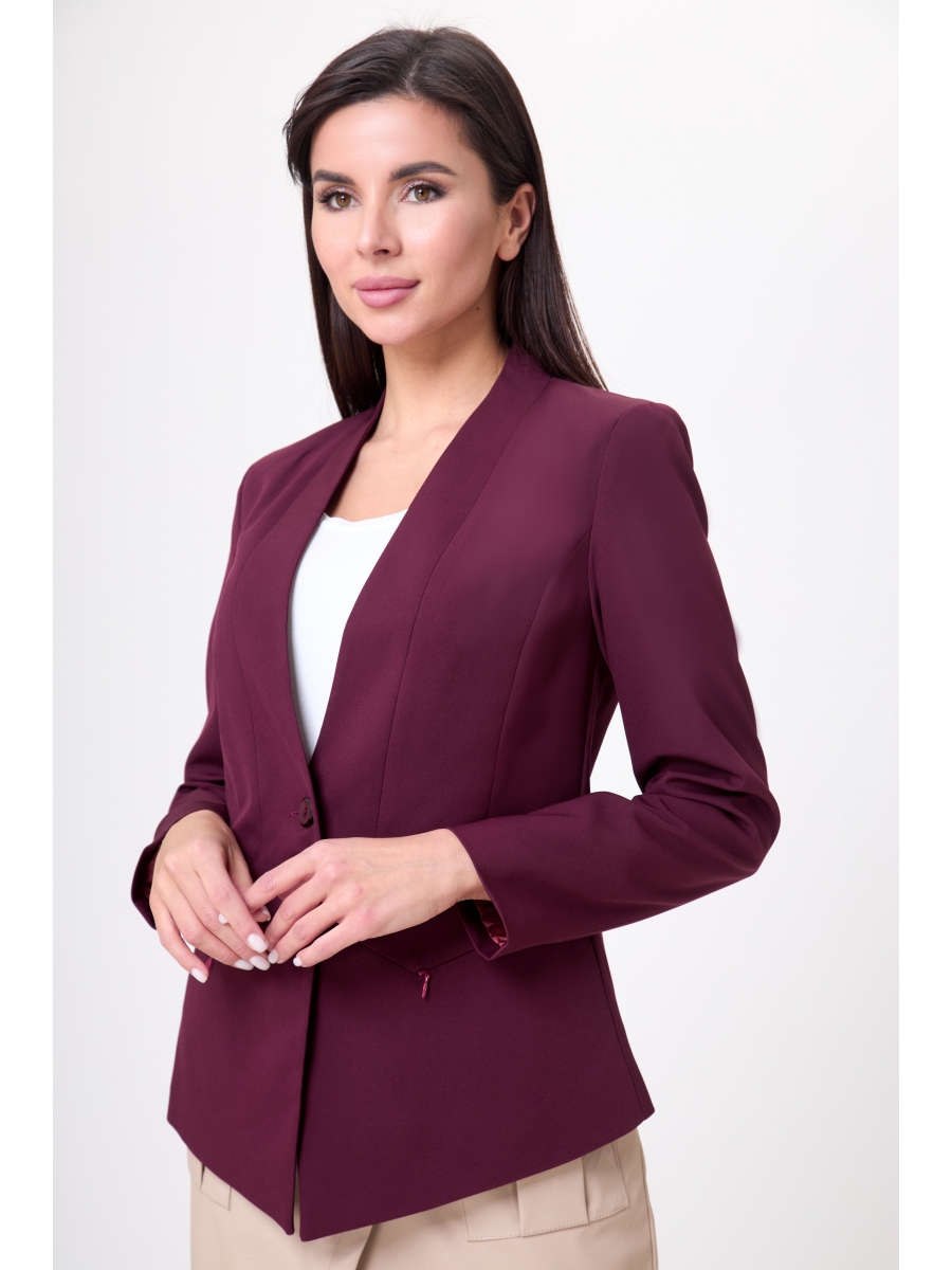Жакет полуприлегающего силуэта с рельефными швами по переду и спинке, V-образным вырезом, что придаёт образу женственность-хрупкость и уверенность одновременно.