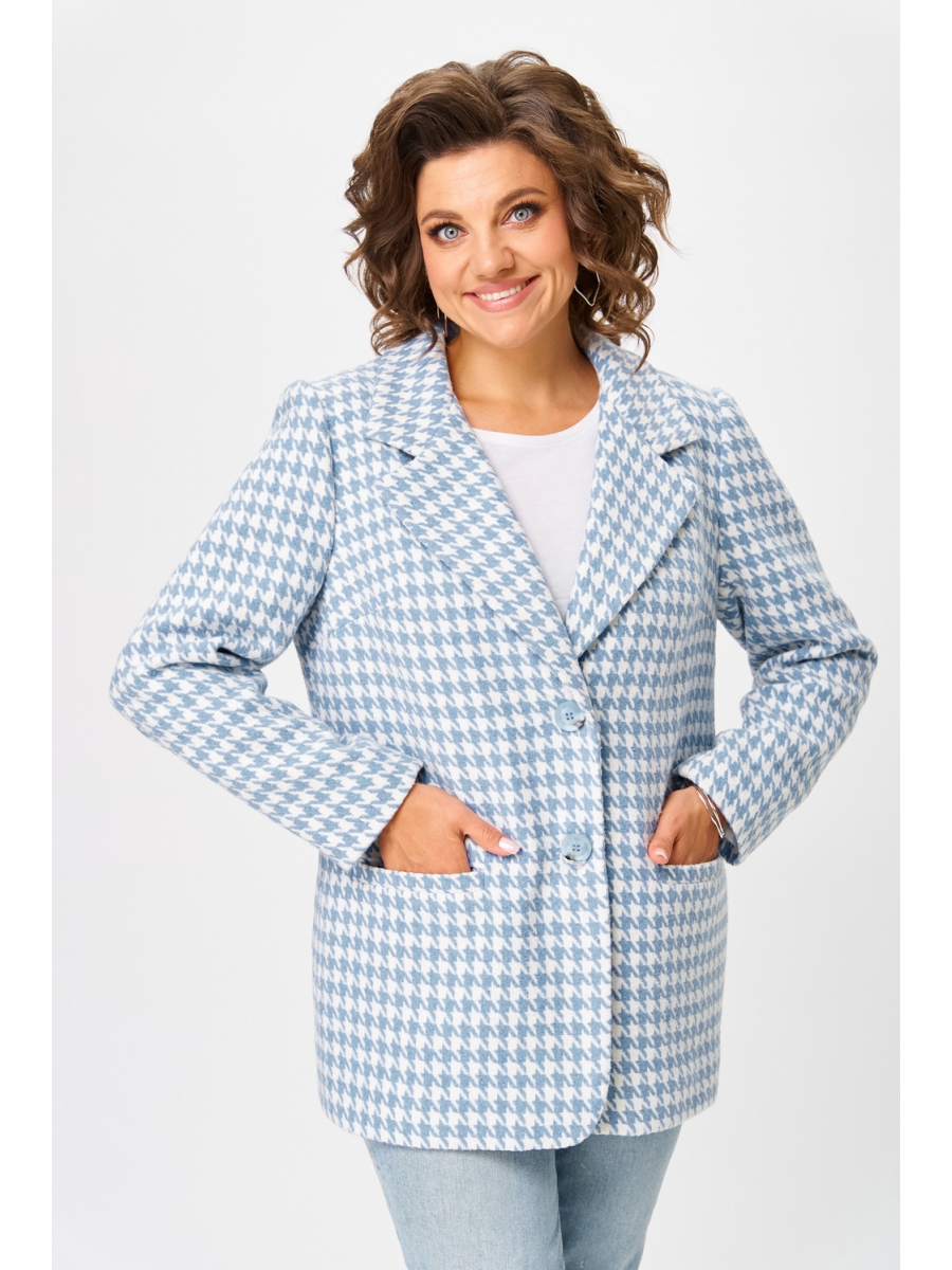 Оформить заказ →Жакет женский свободного прямого силуэта, на подкладке. Застежка на петли и пуговицы, воротник с лацканами пиджачного типа. Рукав длинный втачной двухшовный. Перед с функциональными прорезными карманами с листочкой. Спинка со средним швом.